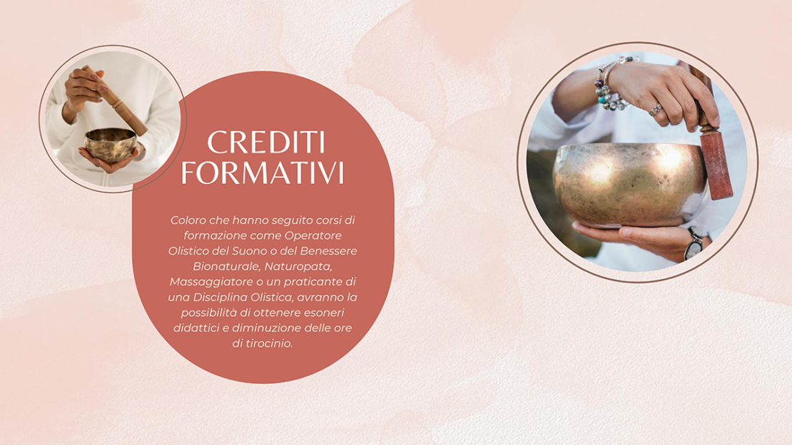 • Lavorare legalmente come Operatore Olistico del Suono in libera professione o in strutture pubbliche e private, in regola con quanto previsto dalla legge 4/2013.