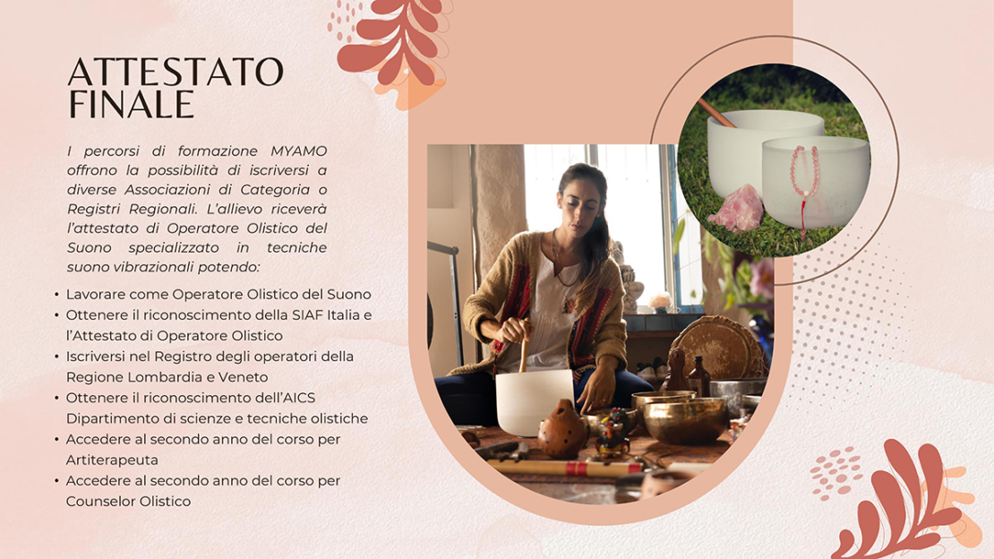 - Il Corso per Operatore Olistico Sonoro Vibrazionale di Myamo è riconosciuto e certificato da IPHM (International Practitioners of Holistic Medicine): siamo certificati a livello internazionale come provider formativo dall'IPHM, una conferma dell'eccellenza e della qualità della nostra formazione.